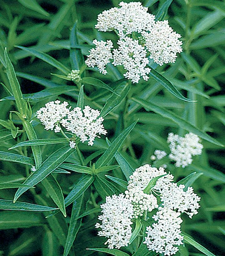 Deep green, lance-like leaves line upright stems that end with flattened masses of lightly fragrant white flowers in early to mid summer. It is perfect for grouping in the back of the garden and thrives in moist to wet areas. This is an essential nectar source for native butterflies and insects.
