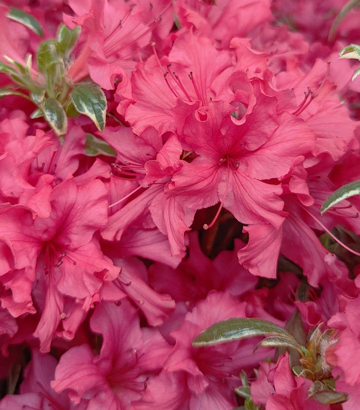 Description- It's hard to ignore the outstanding variegated foliage on this selection that provides color and crispness throughout the growing season. Deep green foliage edged in white forms a dense, round, spreading shape in the landscape that is at home in any wind-protected, partially shaded landscape spot. In mid-May hundreds of fat, branch ending buds open to large, rose red flowers that keep the foliage in the background for 2 to 3 weeks as they cover the plant.