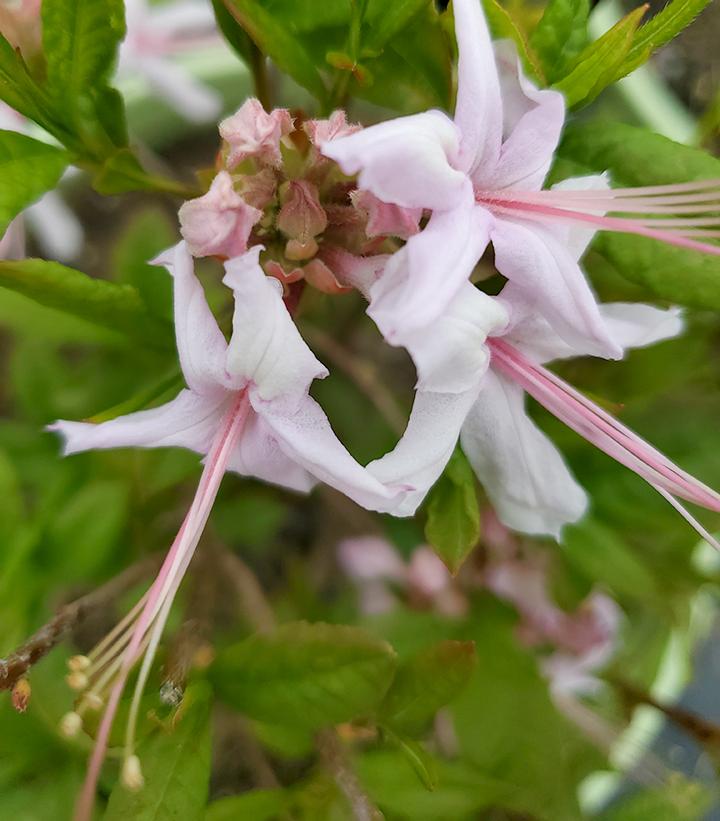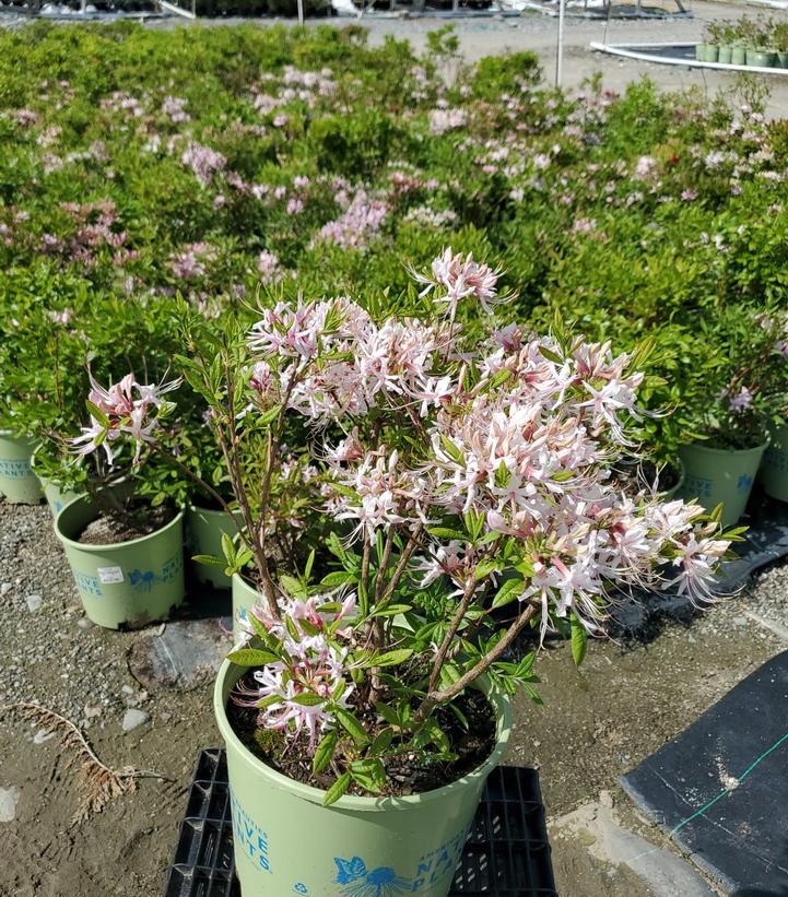 A rare find in the landscape but one of the great native secrets of the eastern woodlands, Pinxterbloom will thrill you with its fragrant, late April bloom that fills the air with its sweet honeysuckle scent. For those more interested in visual stimulation, this selection delivers with rounded clusters of 1 to 1.5" diameter pink to white flowers that bloom just while the foliage is emerging allowing you to focus all your attention on their fragrant beauty. Like most deciduous Azaleas, Pinxterbloom fills a great niche in semi-shaded areas especially when planted in groups to form a sweet smelling, easy care border planting. It thrives in moist areas but is quite tolerant of drier locations, too and provides a great early spring source for nectar in the landscape.