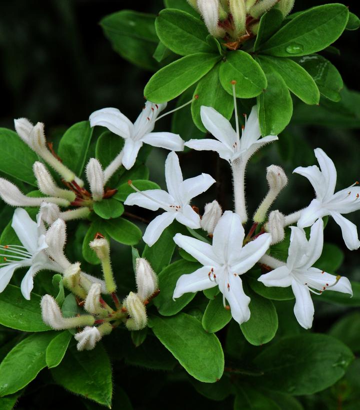 This deciduous azalea blooms in summer. The abundant white flowers have a spicy, clove-like fragrance that fills the garden. The flowers attract butterflies and hummingbirds. Plants grow into multi-stemmed shrubs that put on a show in fall with their flame red foliage.