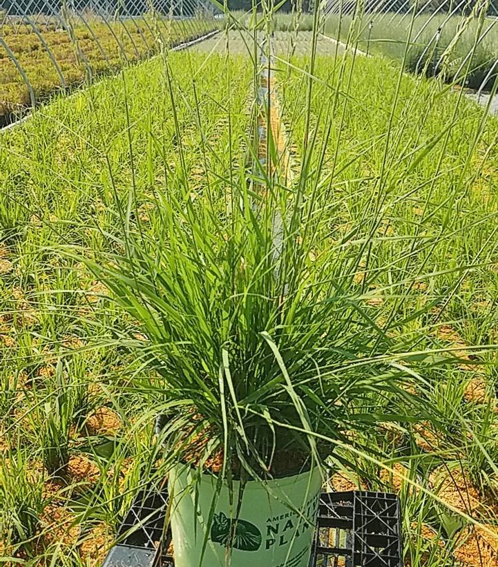 This native grass has graceful, blue-green foliage. Attractive tiny flowers in bright purple and orange appear on tall spikes in late summer. Its name, Sideoats Grama, comes from the way the oat-like seeds all lean to one side of the stem, despite emerging on two sides. Bouteloua makes a wonderful drought tolerant groundcover for a sunny dry location. It combines well with other sun-loving natives like Butterfly Weed, Echinacea and Black-eyed Susans. This grass grows well in many kinds of soil, including those containing clay-loam, gravel, rocky material, and sand. It is very drought tolerant and works well on gentle or moderate slopes.