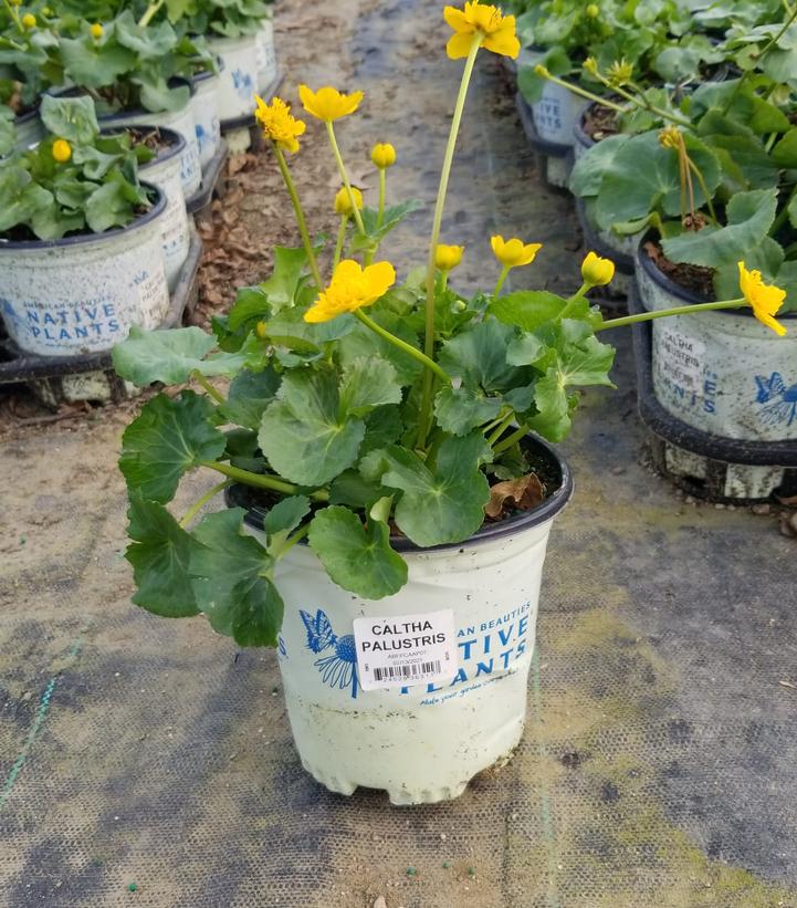 Early to show in the garden, Marsh Marigold is at home in the most moist part of the landscape, in fact, it will not tolerate drying out and prefers at least some partial shade. Plant it in groups in any wet areas and get prepared for a show with almost fleshy, deep green, rounded foliage emerging early and held aloft on stalks with longer stalks pushing flower buds above the foliage in late April. These buds open in early May to reveal clusters of waxy yellow cups that contrast with the foliage and put on a great show into early June. Marsh Marigold is a great early nectar source for native bees and insects and a great source of cover for loads of landscape critters.