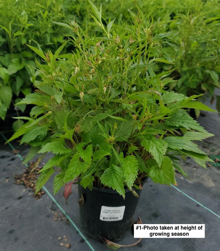 Modern bellflower hybrid has large pink buds that burst into pendulous blooms with long, slender, widely spaced, candy pink petals. Grows well in rock gardens, along with stone walls and border fronts. A great groundcover for small areas with numerous, long-lasting flowers. Flowers are slightly fragrant and attract hummingbirds. Long blooming with outstanding early to mid-summer color. Unique bloom shape and texture is riveting. Perfect for massing and wonderful as part of a mixed perennial container