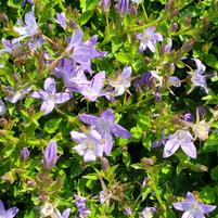 The proud parent of that superb Blooms of Bressingham plant C. 'Blue Waterfalls, this selection is a champion in its own right with an aggressive, ground covering nature. This Campanula is terrifically drought resistant, loves full sun or partial shade, and puts on a lavender-blue flower show in May and June that colorfully dresses its flowing deep green foliage.