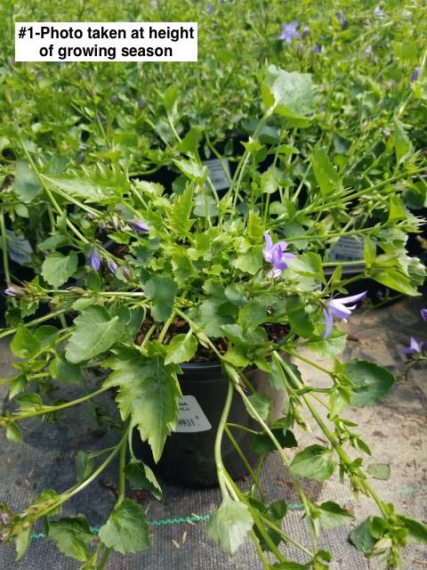Description- A vigorous low-growing, spreading plant ideal for the front of a border, hanging basket, or container garden. Deep blue 1" flowers, with a bit of white in the center, cover this plant from June into July and even into fall.