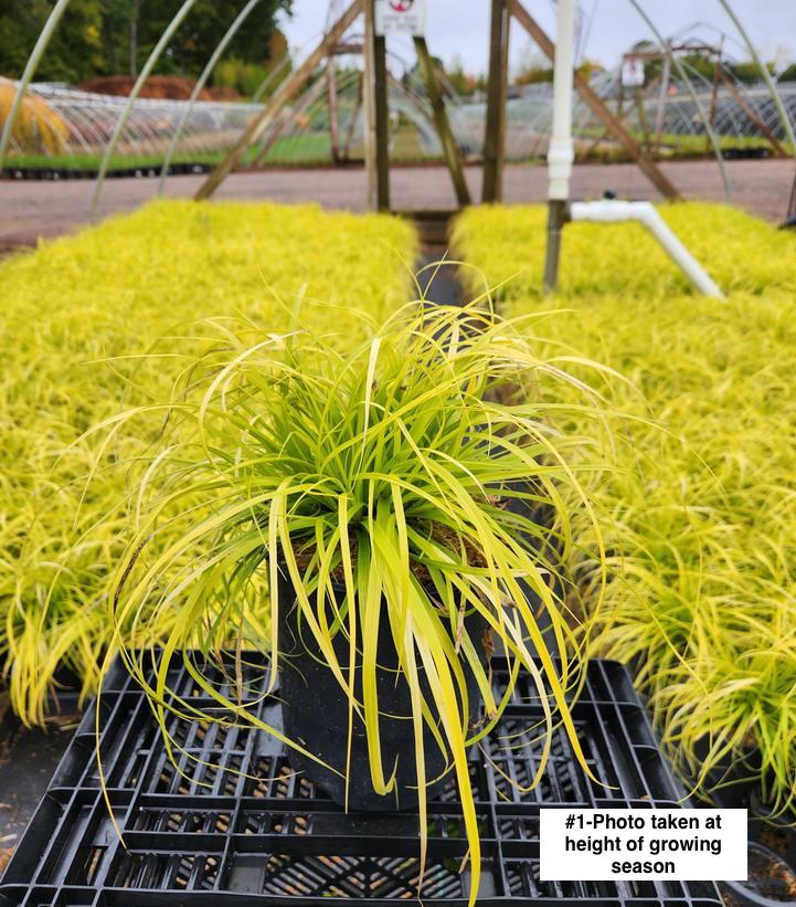 This is a low-growing, evergreen, grass-like perennial with long, thin, arching leaves. Foliage is chartreuse towards the center becoming more gold were exposed to more light.