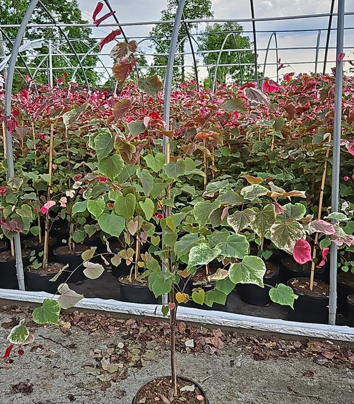 The weeping and rounded tree put on a spring show with colorful purple flowers that adorn its stems, giving way to unique heart-shaped foliage that bursts with shades of pink, red, white, purple and green. Lovely umbrella form makes it perfect for specimen use, and its smaller size provides options for smaller spaces such as patios or small gardens.