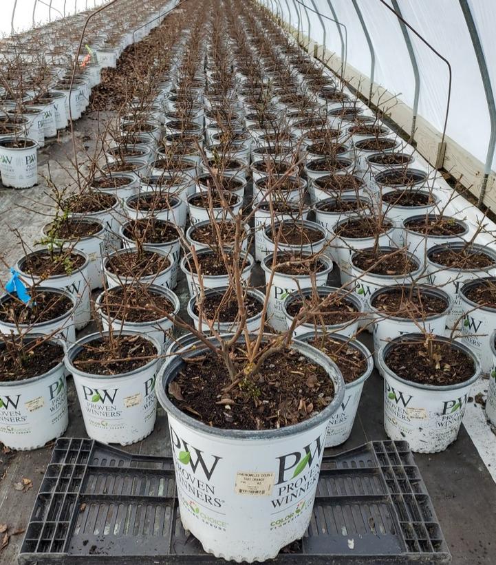 Leave it to Proven Winners®/Color Choice® plants to take a nice flowering shrub and make it great. Double Take Orange™ does just that by taking the common Quince that filled the landscape with early color but unwanted, painful throns and messy fruit and makes it into even more of an early spring color bomb while removing all the things that bugged you about your 'old school' Quince. Gone are the thorns, gone is the fruit and gone are even the flowers as you remember them replaced by HUGE, silver dollar sized, ruffled pink-orange flowers that line the smooth, thornless branches of this vigorous, rounded, spreading shrub. These camellia-like blooms begin to open in early to mid April and soon cover the branches giving you a show that other Quince can only dream of. Plant this easy care beauty in a half to full day sun location. It's deer resistant, will tolerate pruning well and will look outstanding as a single specimen or grouped to form an unforgettable flowering hedge.