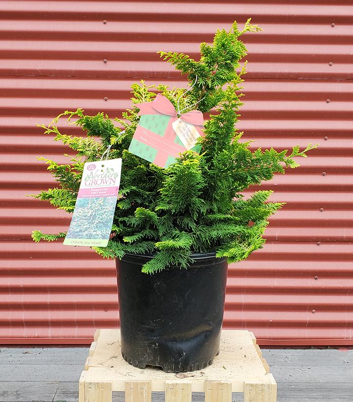 You won't be able to resist this evergreen eye candy, especially given this plant's soft frond-like foliage that will remind you of a golden fern. Dense and broadly upright, 'Fernspray Gold' grows at a moderate pace, tolerating full sun or light shade while keeping its remarkable gold foliage color all year without fading in the summer heat. It's a great plant for grouping together to form a beefy golden border planting or you can showcase its great form and color as a stand alone specimen.