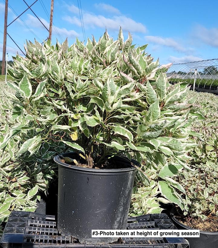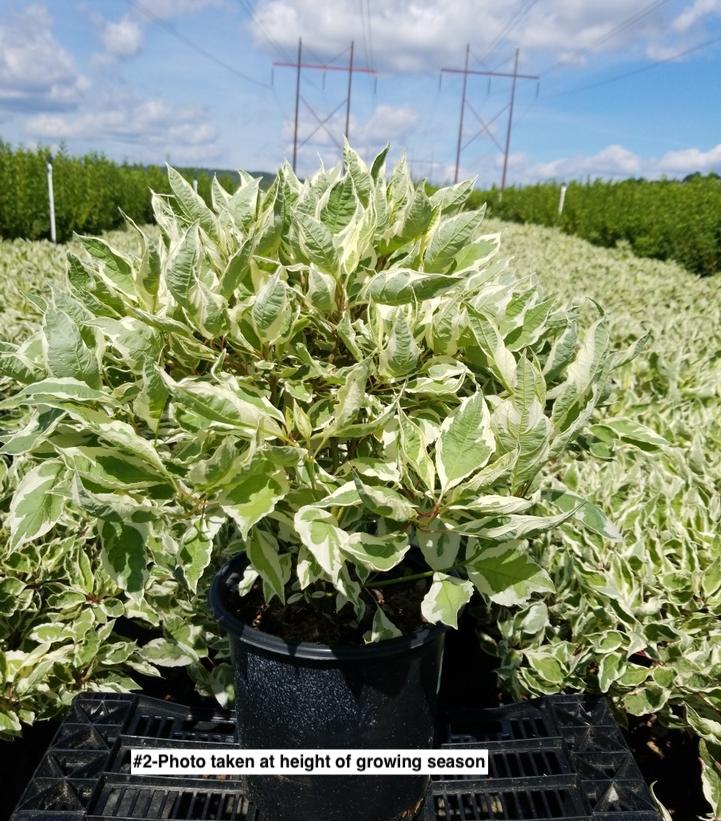 Description- A more compact form of shrubby dogwood, this selection has beautiful cream-edged variegated foliage and stand-out bright red twigs that really enhance the winter landscape. Great for massing or for use in slightly smaller areas than 'Elegantissima'.