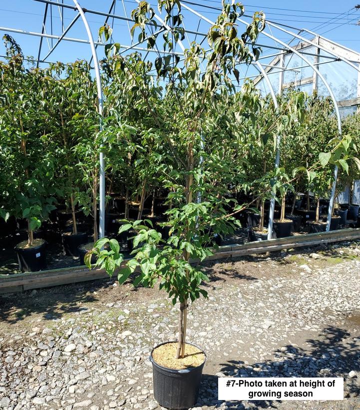 Be dazzled by the the huge, deep, dark fuschia-pink flower bracts that will light up the rounded small tree in June. Bred at Rutgers University, this precocious tree grows quickly and blooms as a very young tree showing off brilliant color almost right away in the landscape. Superb burgundy fall foliage color and large, bird attracting fruit add to its glory.