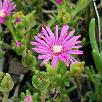 This succulent groundcover has juicy, tubular-like leaves. Deep pink daisy-like flowers adorn the plant all summer long. Native to South America, the ice plant prefers dry, sandy soils, excellent in rock gardens, and its trailing habit looks great draping over a stone wall.