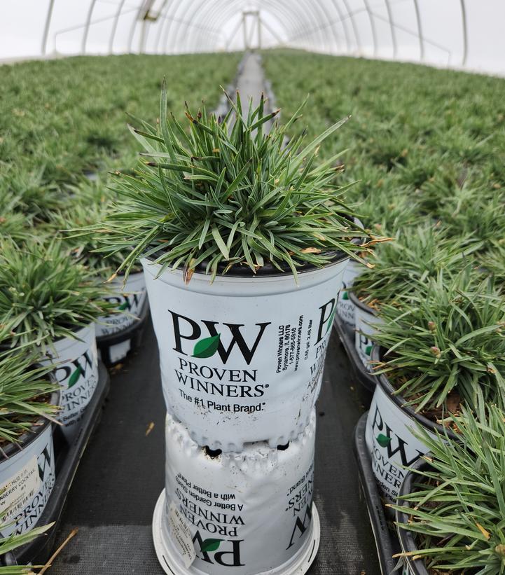 This colorful perennial produces carnation-like, double, hot magenta pink flowers atop a low mound of grey-green foliage. Use it to edge sunny borders and pathways.