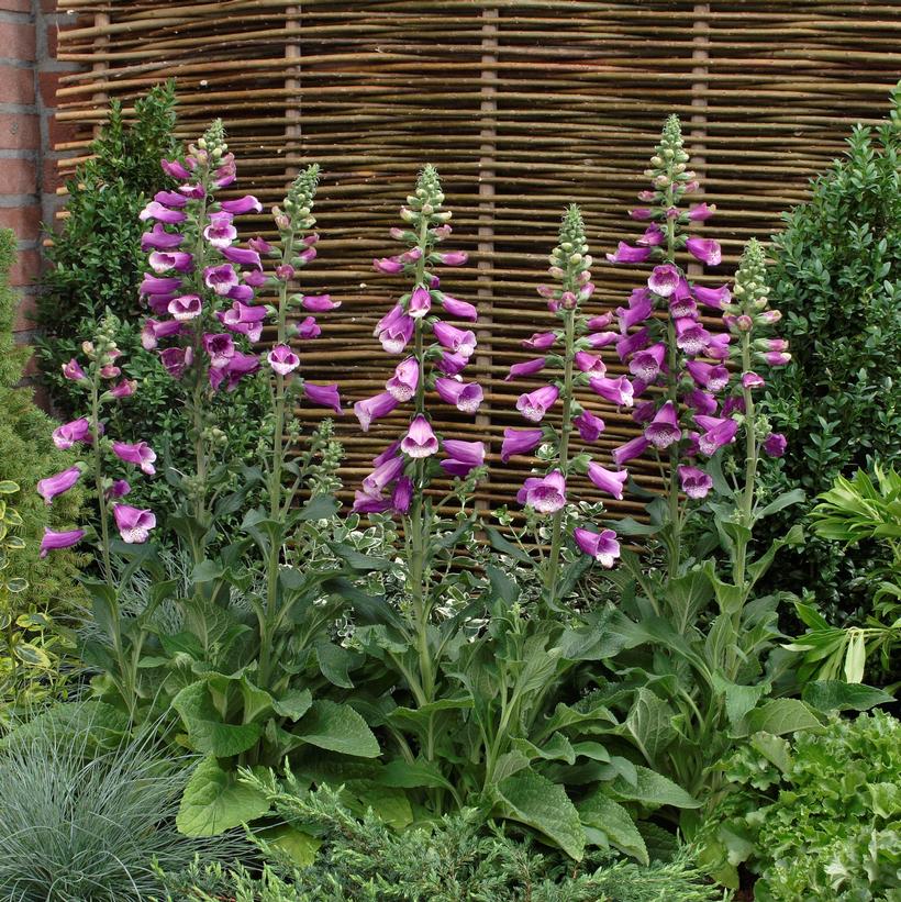 Get ready to be dazzled by this stunning perennial Foxglove that blooms early and often and won't keep you waiting forever for bloom like some other perennial Foxgloves can. Large, thick, almost felt-like oblong leaves form a fat basal mound of foliage by mid spring. Arising from this mound in late May are thick, substantial flower stalks that are loaded with blunt, fat buds. These buds open in mid June to show off deep lavender-purple flowers with heavily spotted maroon throats that are nothing less than breathtaking. One of the great things about 'Dalmation Purple' is the profuseness of its bloom...it really packs the big blossoms in on its flower stalks and distributes them completely around the stem making them look even more showy. This selection will be a blooming thriller in the garden into July and is a perfect early to mid summer focal point plant for the middle or back of your garden. It loves full sun or partial sun and will thrive in a well drained soil area.