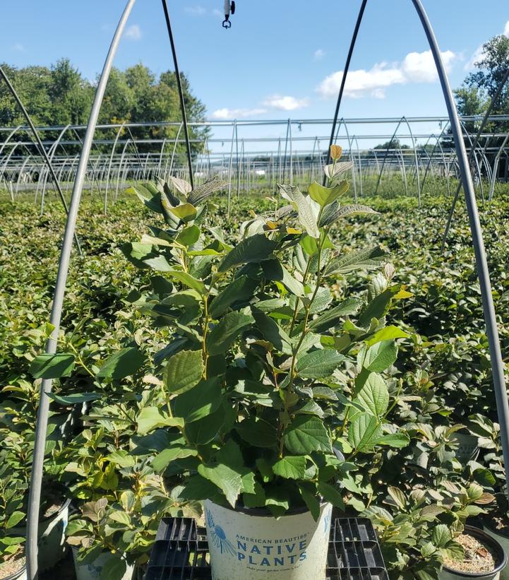 Before leaves emerge, this plant is covered with white, sweetly scented, bottlebrush flowers on the branch ends of its dense, rounded form. Native butterflies and insects flock to the bloom while birds love the cover of its blue-green foliage. Its yellow, orange, and red fall color display is superb! A gem of a shrub! A dense, compact form is ideal for foundation plantings. Flowers are showy and fragrant. Summer foliage is superb followed by a brilliant orange fall foliage show.