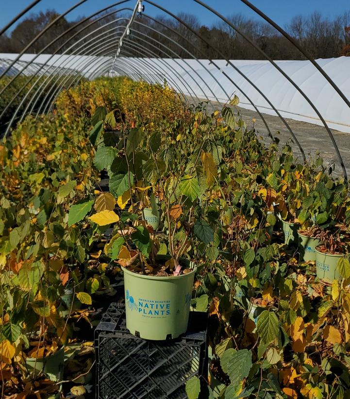 This trouble free native straddles the line between tree and shrub but there is never any doubt of the outstanding characteristics it brings to the landscape. Aggressive growing, it quickly becomes a substantial landscape presence bringing substantial beauty to each season. Spring sees its large, bluish-green foliage emerge with a bronze tinge. Foliage darkens through the summer months hiding branches and providing thick covered protection for numerous bird species. As colder weather approaches, leaves turn a bright yellow providing a tremendous fall foliage show. After the foliage has left in late October, this plant blooms with its spidery yellow, strap-like petals complete with a spicy scent that enlivens the autumn landscape with the last flower of any ornamental of the season. Distinct gray bark adds winter interest to this American Beauties classic plant that grows in full sun or partial shade.