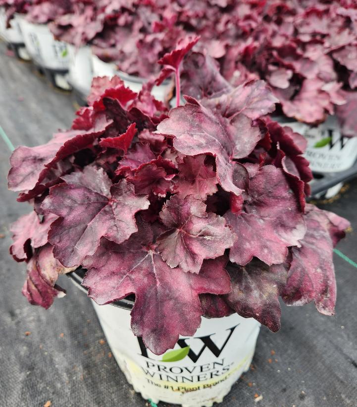 Thick, maple-like, rich, pink-apricot foliage deepens to burnt orange as the season matures, forms a pleasing, colorful tight mound. Flower stems rise above foliage bearing pink bell flowers through June. Deer resistant. Attracts butterflies and hummingbirds. Drought resistant when established. Colorful for massing in partial sun areas. Thrilling used in a mixed perennial deck container. Easy to grow.