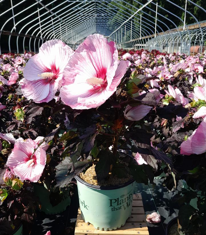 The swirling bicolor blooms with blended hues of snow white, creamy yellow, blushing pink, and cherry red all swim across a lush sea of petals! The large flowers on a compact plant are a real show stopper!