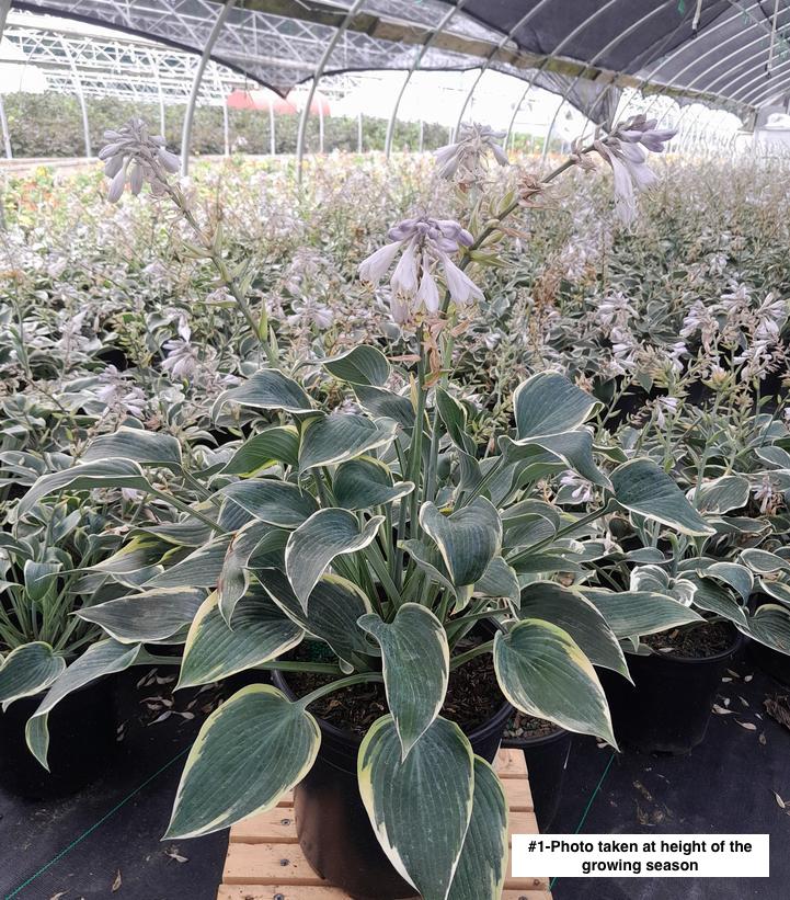 Brilliant is the only way to describe this vibrant blue and yellow hosta. 'First Frost' is wider then it is tall and makes a dramatic statement in the shaded garden. large heart shaped leaves are a bright blue edged in a creamy yellow to white. Tall lavender flower scapes rise above the foliage in summer. Great for shady beds and borders even containers!