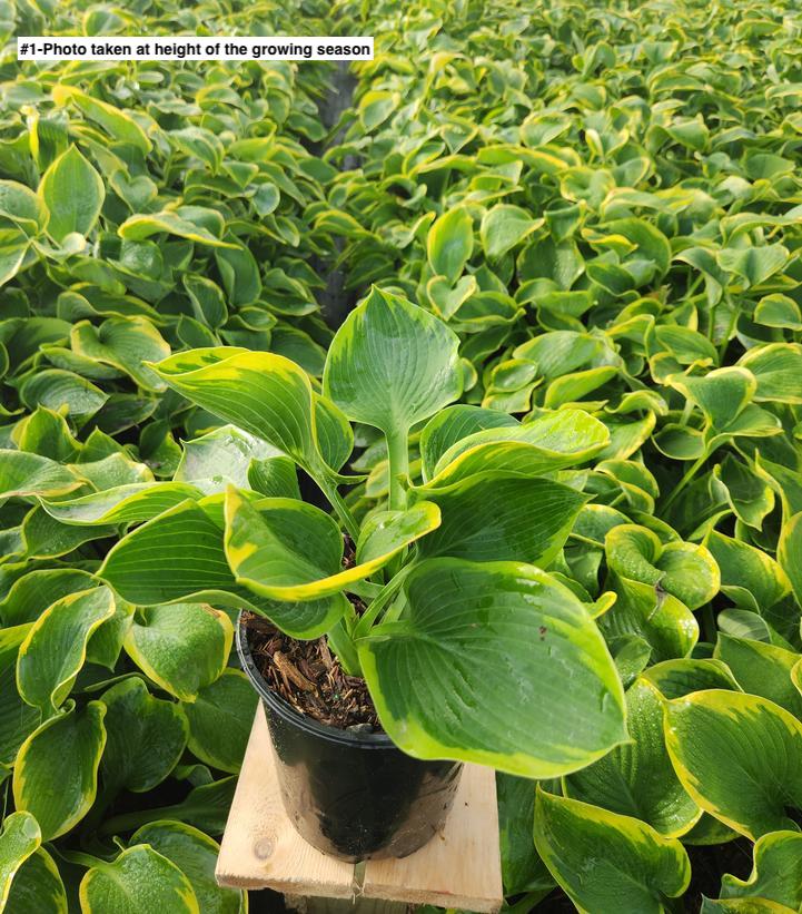 One of the first and most famous Hosta hybrids, 'Frances Williams' is still a landscape gem with big, round heavily corrugated blue-green leaves with striking golden borders. This colorful mound of foliage gives rise to tall spikes peaked by white flowers that open in early August.