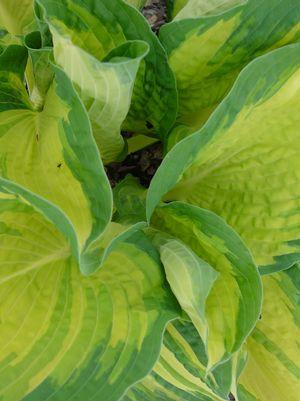 Big, beefy foliage sports a green edge and a light gold center that intensifies as the season progresses and forms a flowing mound of foliage that really fills some space. The foliage is superb but wait until 'Guacamole' blooms with big, light lavender to white flowers atop tall stalks in early August... their amazing fragrance will fill the garden!! 2002 Hosta of the Year.