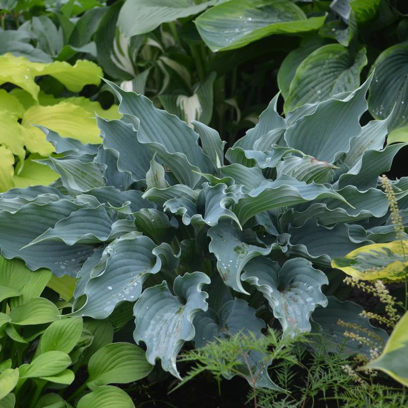 These large-leafed, mounded plants produce beautiful pure white-colored flowers. This hosta creates great ground cover with its long green and yellow leaves. This plant makes great cut flowers, it is rabbit resistant, grows well in containers, and blossoms in mid-summer.