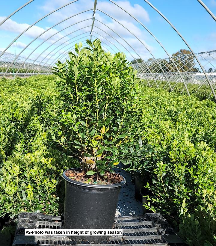 This tough, durable broadleaf evergreen is an outstanding American Beauties plant due to its ability to provide year round cover for a host of native bird species while providing an excellent food source for these same birds with its black berries. Even better, 'Densa' is such an easy plant to grow and tolerates just about any landscape situation, especially sandy soils or places prone to exposure to road salt or seaside conditions. Plant it individually or in groups to form a low barrier or screen, thick with small, dark green, lustrous foliage.