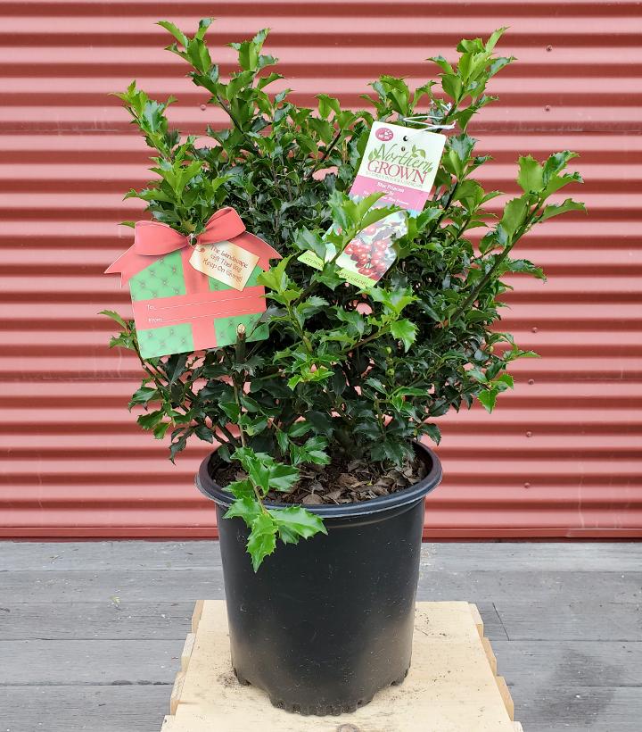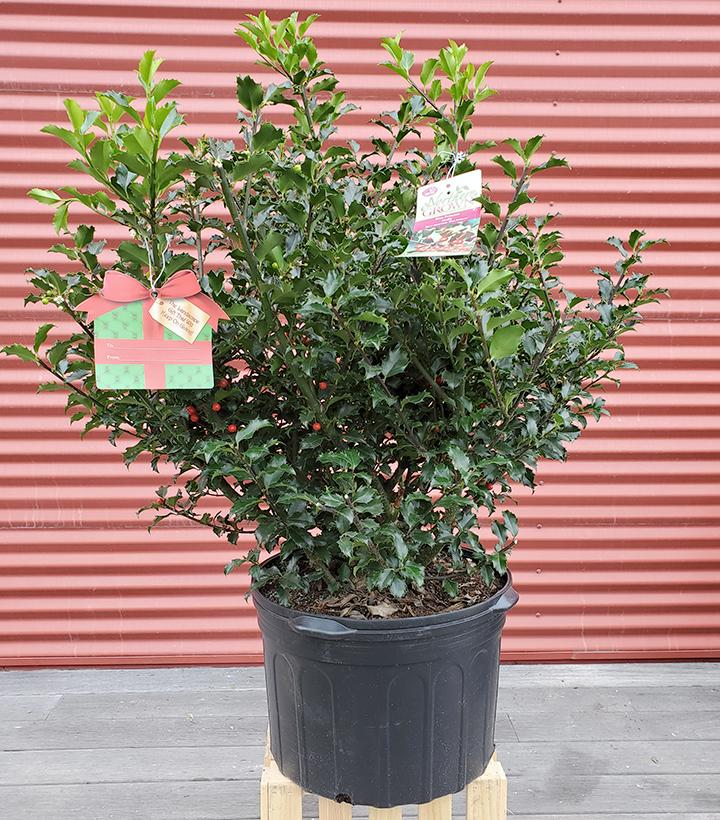 Large, dark blue-green foliage and exceptional berry production make this evergreen holly particularly attractive. This broad growing holly can reach a height of 12 ft. and 9 ft. wide. Performs well in full sun or partial shade. It can be used in the landscape as a specimen or as an accent piece.
