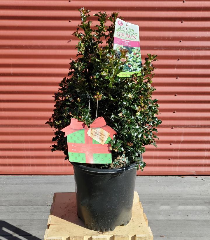 The search for a better upright Holly never seems to end but it could with the advent of 'Red Beauty'. This outstanding selection combines the deep green foliage and large berries of Ilex opaca and compresses it into a dense, smaller pyramidal form that is perfect for the home landscape. Its dense form is accomplished without pruning and its berry set is immense needing only a strategically placed Ilex 'Blue Prince' to ensure outstanding fruit set. 'Red Beauty' is a true departure from the norm in hollies and one that deserves a prominent landscape spot either as a specimen or grouped to form hedge that will look formal with very little work. Plant 'Red Beauty' in full sun for best results.