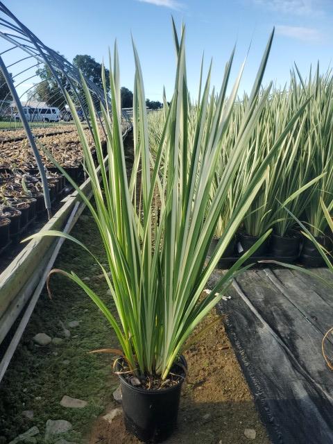 Description- As summer starts warming up, the Japanese Iris like 'Variegata' begin to bloom along the edgesof streams or ponds. Although they love water, they will grow well in areas with consistent moisture and will tolerate even drier soils once their bloom is past. The feature that makes this selection so sought after is its wide, lance-like green and white striped leaves that are dramatic by themselves but stunnning when you add the drooping purple flowers in late June or early July! Plant it in groups for an eye catching display that will light up any water feature!