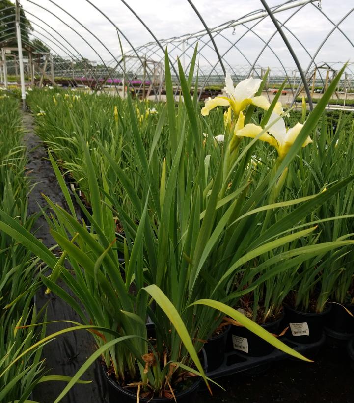 Description- Popular variety bears white blooms with yellow falls. Prefers full sun and moist soils. Blooms from June through July.