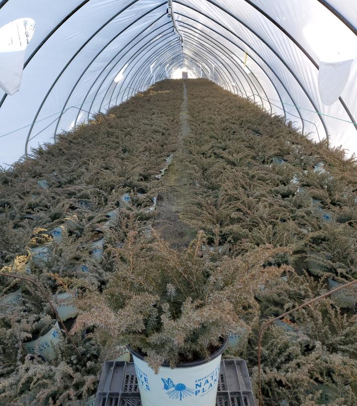 Blueberry Delight® may be one of the toughest plant you'll ever encounter, able to take hot sun, droughty soils and extreme cold without missing a beat and doing it while looking fantastic. This native evergreen will wow you with rich, deep green, needle-like foliage that sports contrasting silvery-blue hues on the upper side that make the plant shimmer in the landscape. A bumper crop of Blueberry like, deep bluish-purple cones that look like berries grace the plant throughout the fall and winter, attracting birds and admiring looks. Blueberry Delight® tolerates some shade and is perfect for grouping in rough soil areas that you want to cover and make beautiful year round. Add in this plant's deer resistance and its ability to provide cover for many landscape critters and you have a plant that begs to be a part of your landscape!