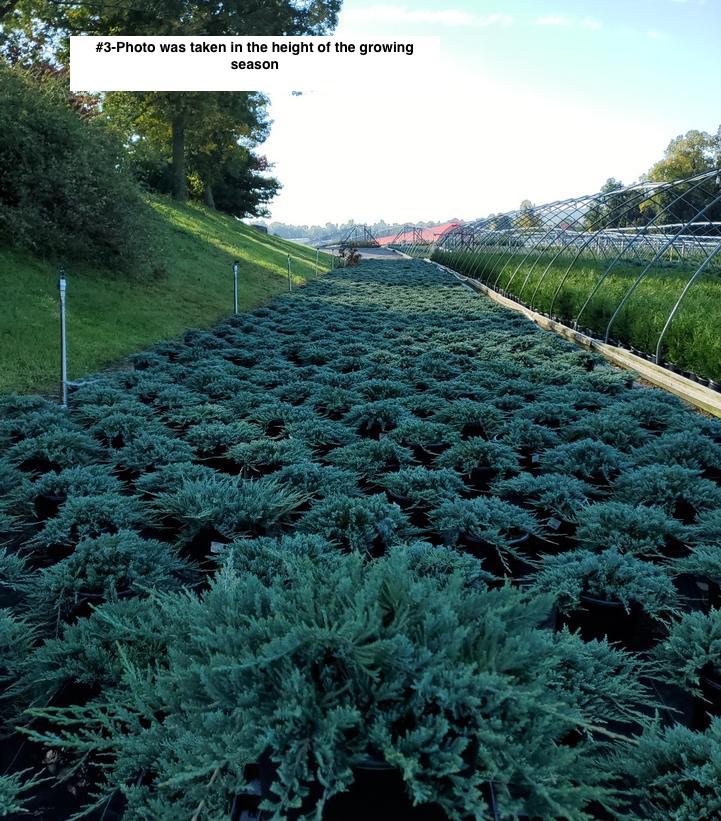 Description- Very flat growing form with trailing branches. Foliage is a very intense silver-blue and will be light purplish in the winter. Fairly rapid, but compact in growth. This plant is our most popular groundcover juniper.