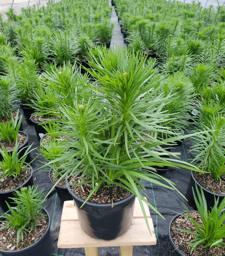 An American native best planted in drifts, Liatris 'Kobold Original' is a free spirit in the border, in the meadow or in the wild. With striking vertical lines, Blazing Stars add lift to the garden as stiff upright stems rise from a tuft of dark green, grassy leaves starting in July. The magenta-purple straplike petals of the many small blooms along the stiff flower stem create a unique bottle brush look that is outstanding and a magnet for bees and butterflies in search of nectar. Drought tolerance along with a compact habit makes it a great choice for containers or grouped in the middle of the garden. This Prides Corner Farms selection comes from divisions rather than a seed source, making 'Kobold Original' consistently shorter and more compact then the seed strain of Liatris 'Kobold'.