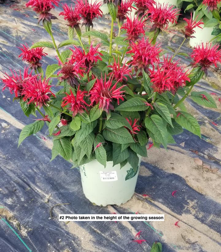 Easy to grow and aggressive, this fragrant foliaged selection will stake out a block of space in any sunny to partially sunny garden and deliver beauty in the form of spectacular flowers and in the many colorful garden creatures it attracts. Its distinctive square stems grow strongly upright, loaded with deep green, aromatic foliage that serves as the backdrop for terminal buds that develop in early summer. These buds open in July to a fireworks show of deep scarlet, 3" long tubular flowers that are held in beefy whorls above the foliage that continues into September. Hummingbirds and colorful butterflies find it impossible to ignore the nectar these flowers provide and you won't be able to resist the colorful beauty. Plant 'Jacob Cline' in a place where it can get big and has good airflow to further reduce the chance of mildew on this highly resistant variety.
