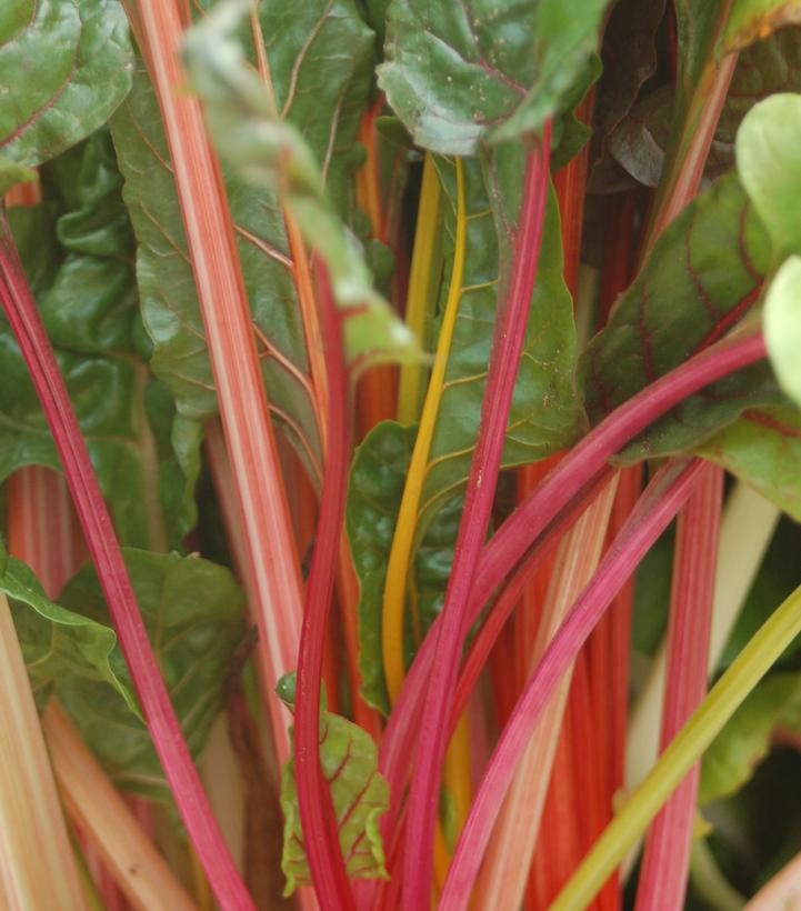 You may think you just planted the bright lights of Vegas in your garden with all the neon you will see from 'Bright Lights' Swiss Chard. Each leaf on this easy to grow leafy vegetable is unique with a great mix of bright neon colors including gold, pink, orange, purple, red, or white stalks topped with bright green or bronze leaves. Milder tasting than ordinary Swiss Chard and a great addition to any salad or plant for outstanding colorful decoration. Each plant produces good yields but you might want to grow some just to look at the constant riot of brilliant color in your garden or in a mixed container on a deck or patio that will make you snap to attention. Plant 'Bright Lights' in full sun and you will find yourself harvesting bright colorful chard in no time, pick the outer stalks when they reach 20" and allow the smaller stalks to mature. Also, this is the perfect plant for cropping multiple times in the garden especially toward fall when cooler temperatures will aloow it to thrive and allow its color to be even more riotous!