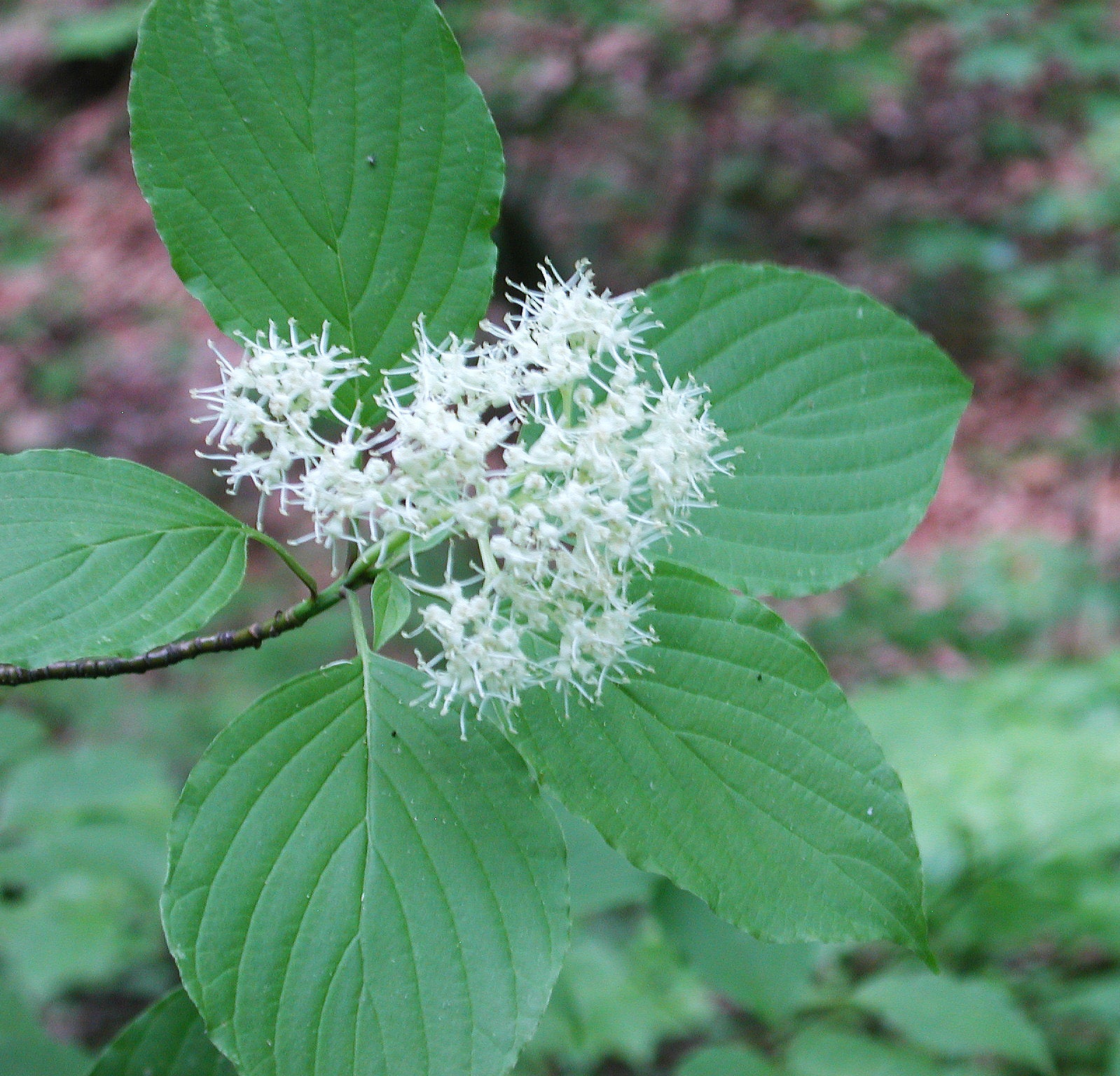 This native tree is hard to find in cultivation but is a true winner for the native landscape because of its ability to thrive in semi-shaded woodland areas and its season to season beauty that other ornamental trees can only envy. Its rounded, somewhat pyramidal head is covered by medium to deep green leaves that whorl around branched providing a backdrop for flattened clustes of small white flowers that bloom from late May into June and fill the woodland with their gentle fragrance. Native insects love the bloom and birds can't get enough of the profuse fruit that follows in fall that starts green, turns red and matures to black. Yellow to purple-red fall foliage color adds to this plant's spleandor and completes and outstanding landscape package!