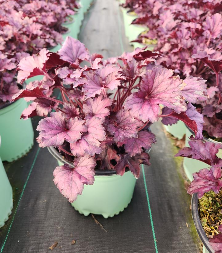 'Forever Purple' is a knockout with ultra-purple glossy leaves with fluted edges and great vigor. Very short spikes of purple-pink flowers in summer attract butterflies and hummingbirds. Wonderful in mixed containers, perfect for color in dry shade, spectacular grouped in the garden. Feed yearly with an organic fertilizer. Remove spent flower stalks and cut back after a hard freeze.