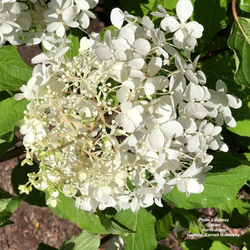 If you are looking for huge Hydrangea blooms, there is nothing that holds a candle to 'Phantom' with mammoth flower cones that can be up to 15" tall!! You may rub your eyes when you first see the size of these early to mid August flowers but you can believe it and rest assured that the thick, heavy duty stems that hold them aloft are up to the task of keeping them upright and not floppy, unlike many other paniculata varieties. And, just because they are huge, it doesn't mean they are here and gone. 'Phantom's' flowers last well into the fall taking on a pink shade as they age and they dry well for use in arrangements for inside. 'Phantom' loves full sun or partial shade and will make one of the showiest border plantings ever when grouped.