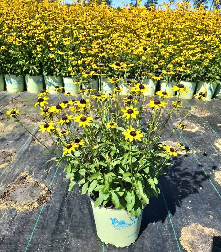 There is no more familiar summer plant than Black Eyed Susan and no plant more essential to the native landscape. Fulgida is a slightly lesser known selection that 'Goldsturm' but it brings so much more to the garden. Fulgida is slightly smaller that 'Goldsturm' as are its flowers. Of course, we are splitting hairs here...Fulgida's bloom is still big and, even better, it shows its golden rayed, deep brown coned flowers far longer than 'Goldsturm'. Fulgida begins to bloom in July and is still ravishing in October when 'Goldsturm' is looking to hibernate meaning there are farm more blooms for nectar seeking native butterflies and far more seed on spent flowers to keep you native birds fed and happy. Use this easy to grow, drought resistant beauty in sunny area and in groups for breathtaking summer color