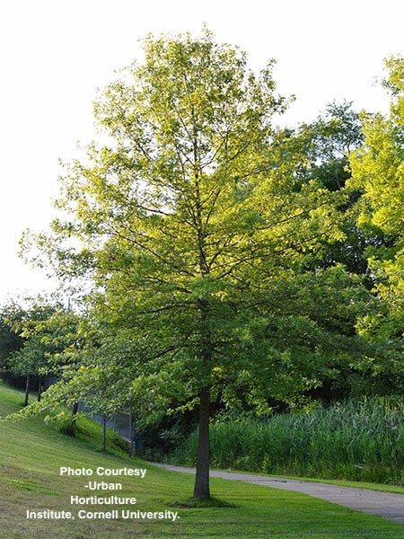 Flower Color - Yellow Shades Description- The Pin Oak is a symmetrical deciduous oak tree with ascending horizontal branches. Glossy, deeply lobed, dark green leaves turn to shades of russet, bronze or red in the fall, but begin as yellow-green buds in the spring. Also known as the Swamp Spanish Oak, it is one of the most popular commercial oaks, planted as both a street and a landscape tree.
