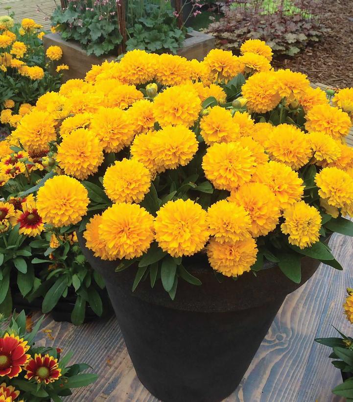 This very compact tickseed shows off its beautiful golden-yellow pom-pom flowers from spring to fall. Perfect for use in borders or containers. Brilliant blooms provide excellent cut flowers.
