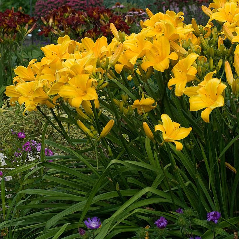 'Buttered Popcorn' will brighten up any garden with its golden yellow blossoms. They are a very fragrant form of daylilies that bloom around mid-summer. These flowers attract butterflies, hummingbirds, and support bees. They are low maintenance, salt-tolerant, and rabbit resistant.