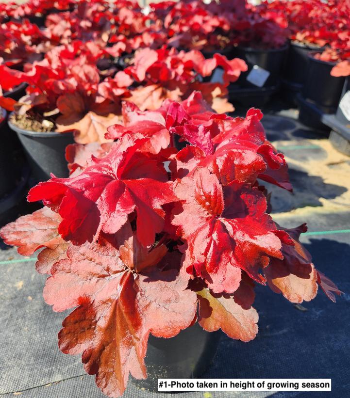 Coral Bells will add a unique color to any garden with its gorgeous red foliage that darkens throughout the season. This heuchera blossoms in early summer with small white flowers. It is deer and rabbit resistant and grows well in containers. The low growing, leathery leaves will look great at the front of a border.
