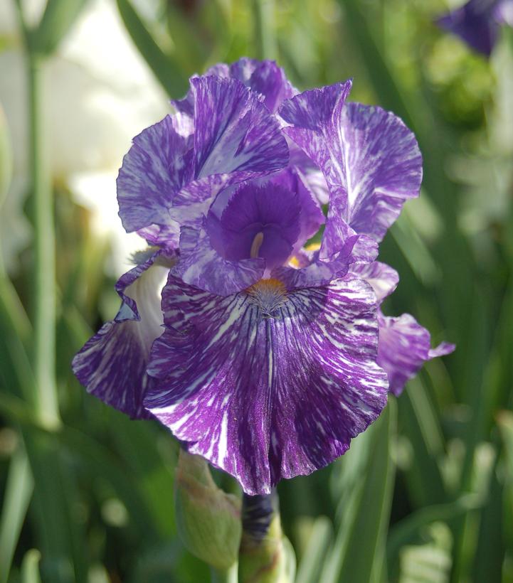 Durable old fashioned perennial with stalks of large, deep purple flowers flecked with white. Each flower has unique streaking. Winner of three American Iris Society awards. Blooms June-July. Ideal for sunny borders, near ponds or water gardens. Good cut flowers.