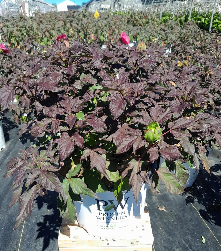 Huge 8”, puckered hot pink flowers cover a round, dense habit of near black foliage. A must have statement piece for your garden!