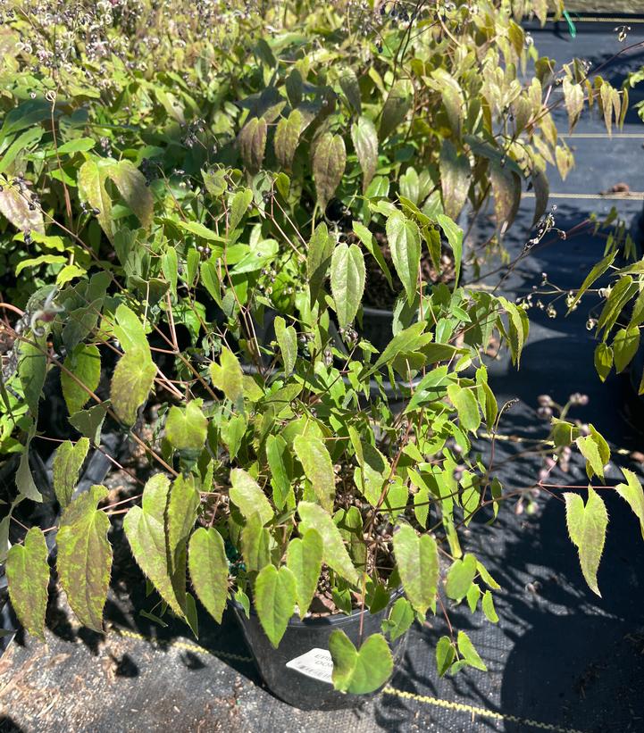 Superb green mottled red foliage forms a mound that is topped by a cloud of delicate white spurred flowers with pink centers in mid-spring. Like all Epimedium, 'Domino' thrives in shade and its easy-care nature makes it perfect for grouping. Outstanding shade groundcover. Flowers provide great airy texture while the foliage is dark green and attractive. Perfect for massing and for use in containers destined for a shade.