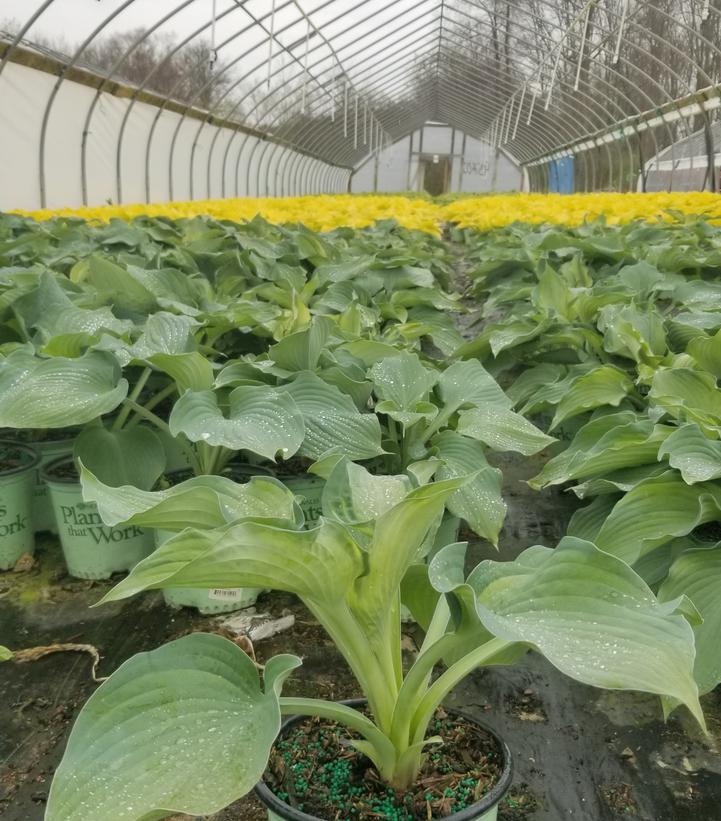 'Guardian Angel' guards against shade landscape boredom with large, thick blue-green leaves displaying a white center that can light up any garden. Compact, dense clusters of light purple flowers rise above the foliage on stalks in mid-summer while each leaves white center mists over with a sprinkling of green color adding to the landscape excitement.