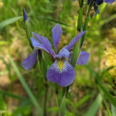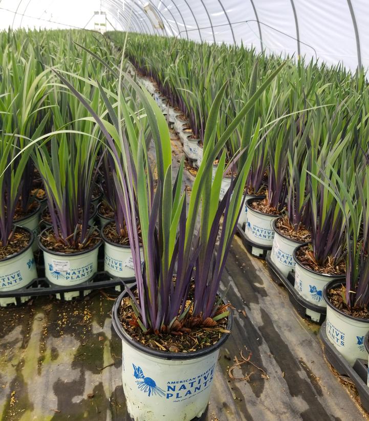 This brilliant selection from Mt. Cuba Center will have you gasping when it emerges in early spring with its blade-like foliage aflame in shocking purple! As tolerant as the species, its best, longest foliage color show is ensured by planting with abundant moisture. A native showstopper! Blue flowers in spring.