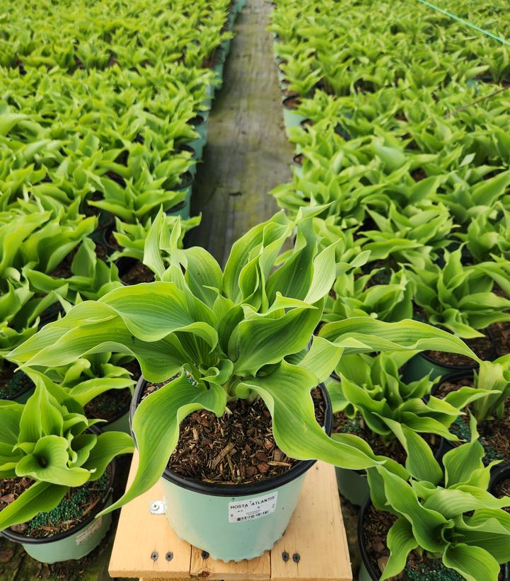 You'll be ready to shout, 'Hail Atlantis' when you see this plant's big, spectacular foliage that features a wide margin of buttery yellow color surrounding a center of emerald green. The garden effect is amazing as each plant forms a wide, colorful island that can turn any drab shade spot into a focal point. Perfect for grouping or outstanding as a single specimen, you'll get even more color in summer as stems of pale lavender flowers rise above the foliage.